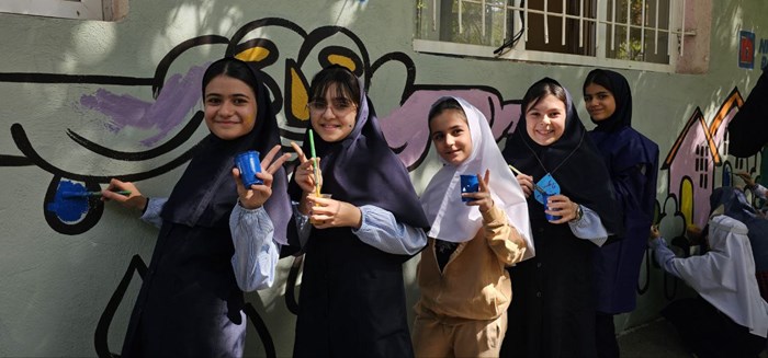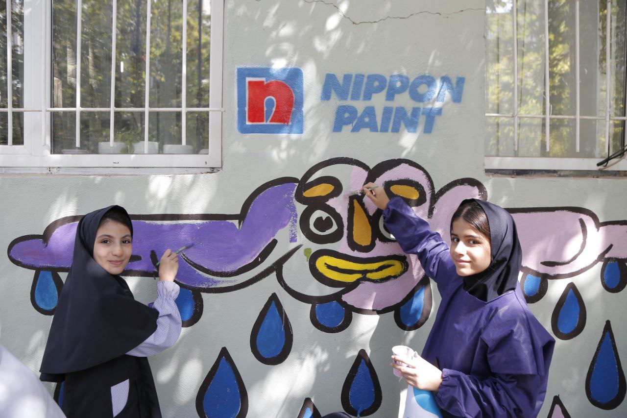 بخش پایانی برنامه با نقاشی مشارکتی همراه شد. دیواری سفید در حیاط مدرسه، به تابلوئی رنگارنگ بدل شد؛ جایی که کودکان با رنگهای نیپون، قطرههای آب، درختان سبز و زمین آبی را تصویر کردند. هر کودک در پایان سهمی از رنگآمیزی داشت و جایزهای کوچک به یادگار گرفت.