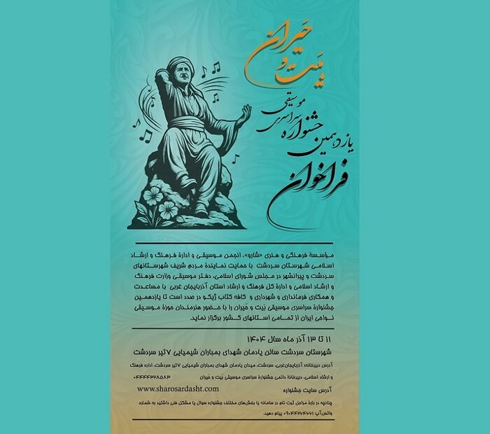 یازدهمین جشنواره سراسری موسیقی «بَیت و حَیران» با حضور هنرمندان موسیقی نواحی سراسر کشور در سردشت برگزار میشود.
