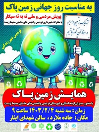 به مناسبت روز جهانی زمین پاک پویش مردمی و ملی نه به ته سیگار با مشارکت شهرداری کرج فردیس و انجمنهای حامیان محیط زیست برگزار میکند.